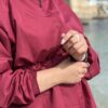 Tunique : tissu kaoui , long , avec une fermeture détachable , un détaille en tissu maillot au niveau de poingner et le col