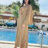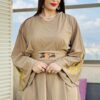 Robe Caftan en broderie en niveau des manches avec une longue ceinture