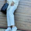 Pantalon basic en blanc très tendance , tissu gabardine italien , classique , trop class porté avec des tuniques et Liquettes en différents couleur , en blanc non transparent